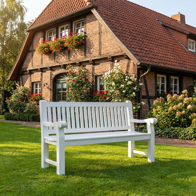 Friesenbank - Holzbank Windsor aus Teakholz in weiß und natur 180 cm 4-sitzer
